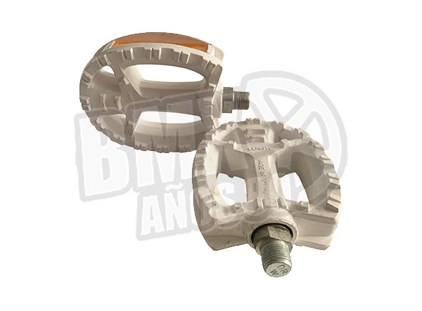 Los pedales Monty blancos son compatibles con la mayoría de bicicletas BMX clásicas. Su color blanco aporta un aspecto limpio y llamativo que combina perfectamente con cuadros de estilo vintage o montajes de inspiración ochentera.